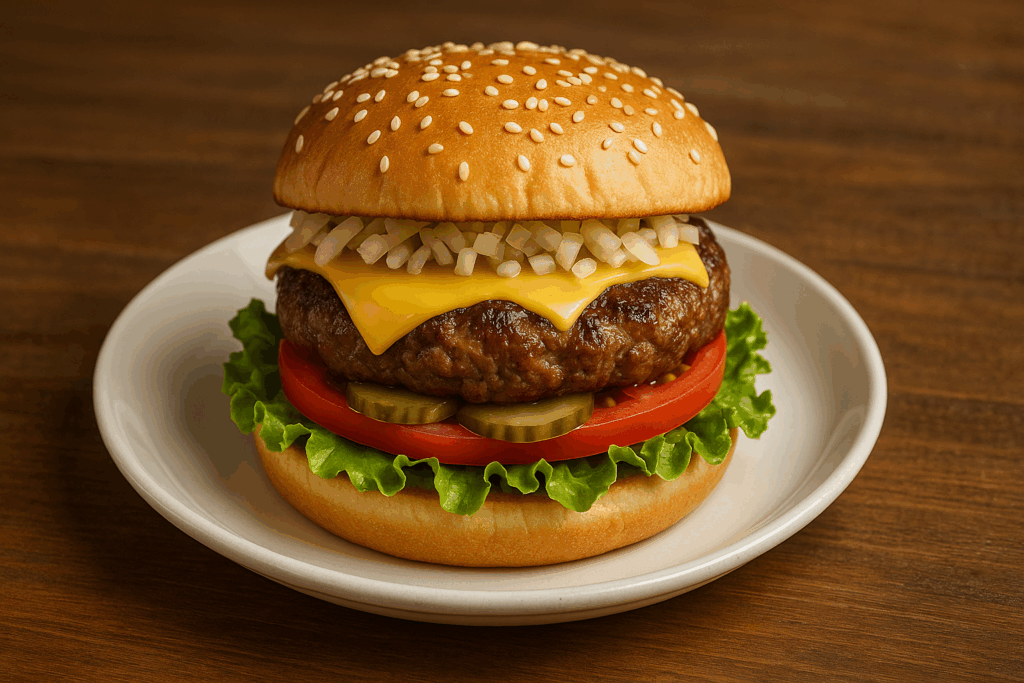 当店自家製のバンズとハンバーグを使った食べ応えバツグンのハンバーガーです。